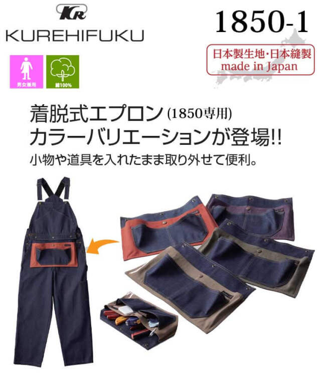 | 製品名: | 着脱式 デニムエプロン 1850-1 エプロンサロペット1850専用 クレヒフク KURE 日本製 作業服 作業着 CATavenirシリーズ |