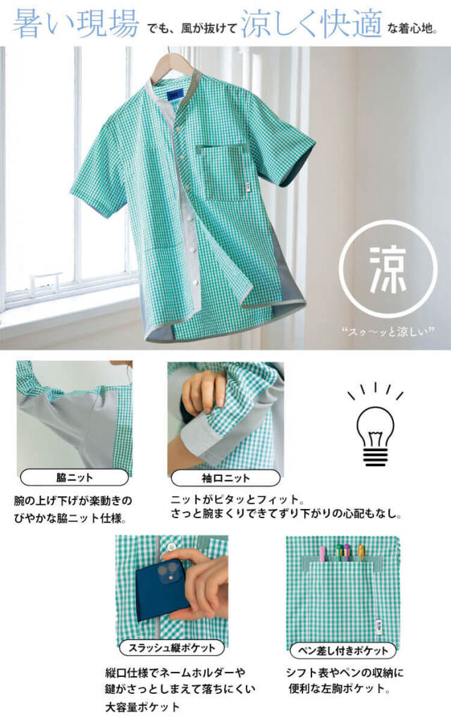 暑い現場でも、風が抜けて涼しく快適な着心地です。裾アウトで風を通す工夫がされています。パンツインでもアウトでも着られる長め丈のトップスです。アウトで着ることにより、熱がこもらず、風の通り道を作るためスゥ~ッと涼しい着心地を叶えます。パンツインでもアウトでも着られる長め丈豊富なサイズ展開、選べる多彩なシルエット、対応力のあるウエスト周り、顔映りが良いカラーリング、着やすく動きやすい丈感、体型・年齢・性別を選ばない工夫がされています。