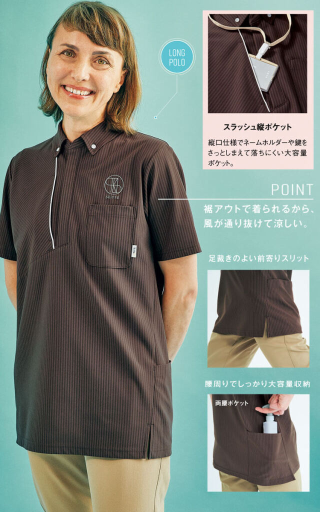 裾インでもアウトでも、きれいに着られる実力派ポロです。吸汗速乾ニットだから、さらりと涼しく快適です。落ち着いた色とデザインで洗練された空間にもマッチします。清潔・快適機能素材でウイルス、汚れ、臭いなどの気になるすべてをブロックします。衿元は風が抜けて涼しい第一ボタンなしのデザインです。吸汗速乾素材でサラッとした着心地をキープします。