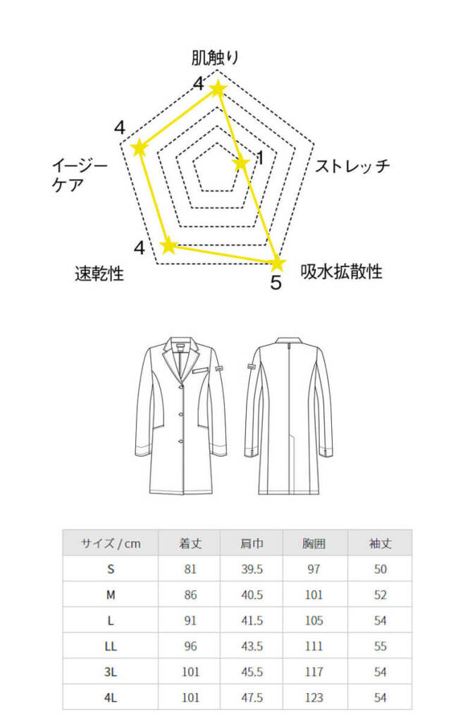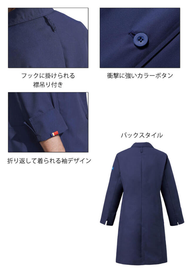 男女問わず大人気のDickies(ディッキーズ)シリーズから、従来のドクターコートとは違い、ラフでカジュアルに着てほしい!という目的で開発されたレディースカラードクターコートが登場。 医療現場で使用されるコートはホワイトや淡色系がほとんどですが、スクラブとのカラーコーディネートを考えたカラーコートがフォークだからこそ実現しました。 白のドクターコートだと医師として識別をしやすいですが、白衣を見ただけで血圧が上がる「白衣高血圧症(ホワイトコート症候群)」と呼ばれる症状もあります。カラーコートならそんな心配もありません。暖色系の色味なので、患者さんに与える印象も良いです。 タフな素材であるジアポプリンは、洗濯を繰り返しても毛玉になったり縮んだりせず、劣化しません。洗濯はもちろん、ウイルス対策になる次亜塩素酸ナトリウムをを吹きかけた消毒でも色落ちのしない優れた素材です。ボタンもシリコン素材なので耐熱と洗濯耐久抜群。 コートの下にはディッキーズスクラブを着ることを前提に作られているので、ゆとりがあるカジュアルな作りに。 ポケットなども最低限でシンプルな作りにすることで、様々な職種の方に気軽に羽織っていただけるカラードクターコートになっています。