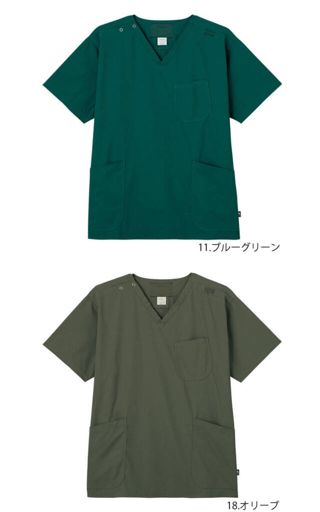 フォーク製品の中でも最高級の品質を提案する「F Lab.」シリーズから、味わい深いビンテージ感が魅力のメンズスクラブが登場。小松マテーレ独自の「染料役者」という機械を使って、ポリエステルを製品染めすることで、ニュアンスのある色ムラや色合いが独特の風合いを感じさせるビンテージ感を再現しました。味のある素材感の見た目に対し、滑らかなタッチで着心地抜群。ポリエステル100%の素材で着用シワが出づらく、イージーケアなのも魅力の一つです。素材感の良さを活かすために、全体的にシンプルにしつつも、後ろのダーツやニュアンスのあるポケットなど、ジャケットをイメージしたディテールを取り入れて、Fラブならではの高級感を演出しています。ナチュラルなシワ感と柔らかくストレッチ性のある生地で、デザイン性と機能性に優れた、周りと差のつくオシャレなメンズスクラブです。 ※こちらの商品は、アイロンをかけずにシワ感をお楽しみください。(ポリエステルなので一度シワになったものはアイロンをしても綺麗にはなりません。)