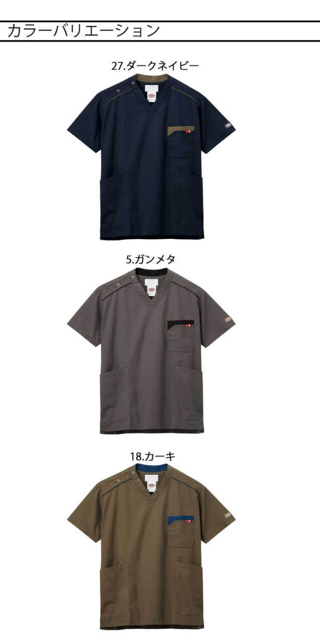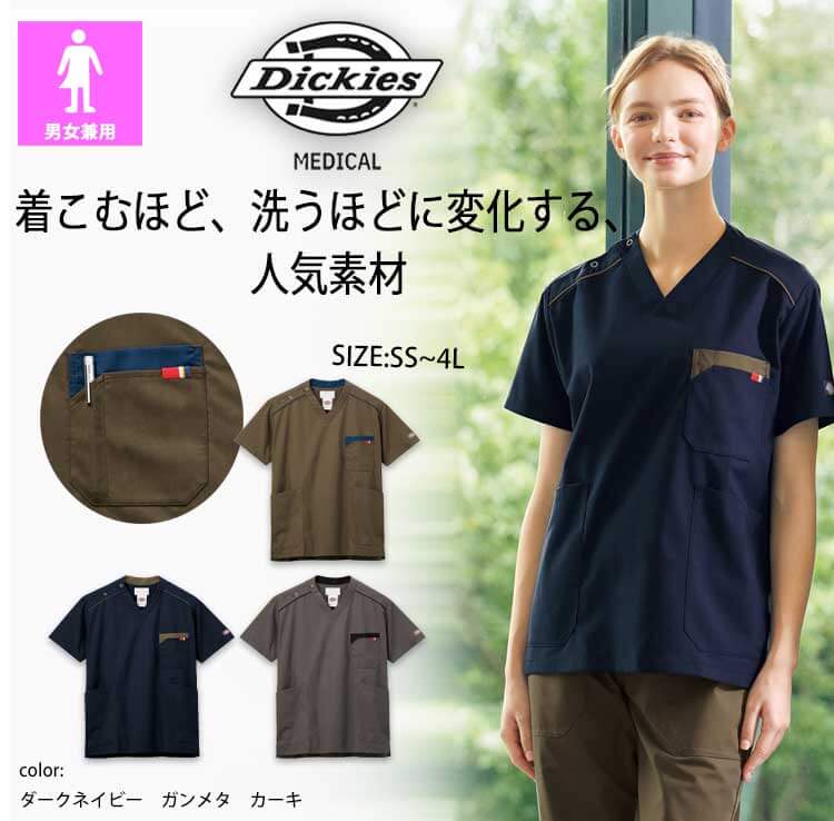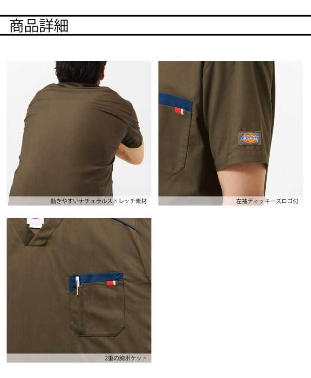 ディッキーズとフォークが共同開発した、大人気ディッキーズシリーズの男女兼用スクラブ。ディッキーズらしく落ち着いたカラーに、ワークウエアのディテールを追加。落ち着いたカラーで、大人っぽい着こなしができます。また、左袖には定番のディッキーズロゴ。胸ポケットの配色も魅力です。「パルパー制電トロ」素材は汗を吸い取りやすく、ナチュラルなストレッチを効かせた、着こむほど、洗うほどに変化する、人気素材。ディッキーズらしさ溢れるデザイン性と機能性で、毎日快適にラフに着こなせる男女兼用のディッキーズスクラブです。