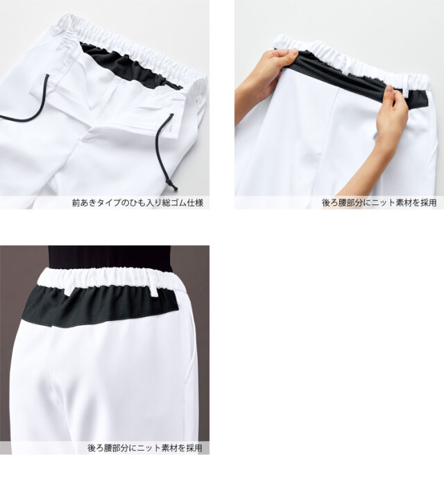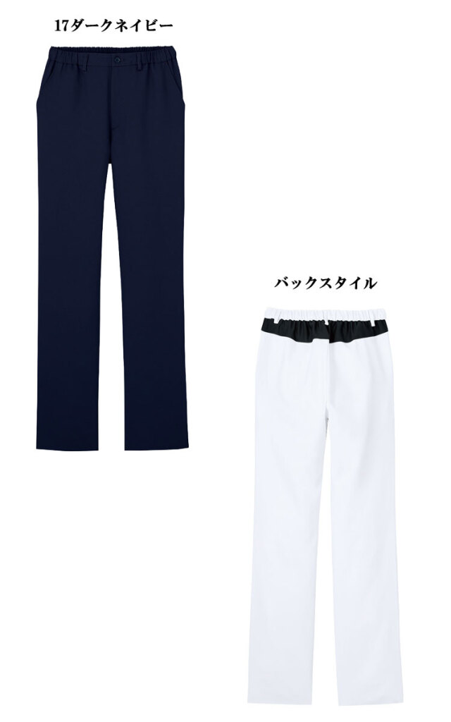 男女兼用のストレートシルエットパンツ。しゃがむ動作など動きの多い職種の方に向けて、動きが一番大きい後ろの腰部分に「ブリースニット」というニット素材を施すことで、引っ張られず、伸びて動きやすい、高いストレッチ性を実現。脇ゴム仕様でウエストが楽チンなので、窮屈感がなくストレスを軽減。サイズ展開豊富で、さまざまな体型の方が着用可能。機能性抜群で、一日中快適な着心地のストレートパンツです。