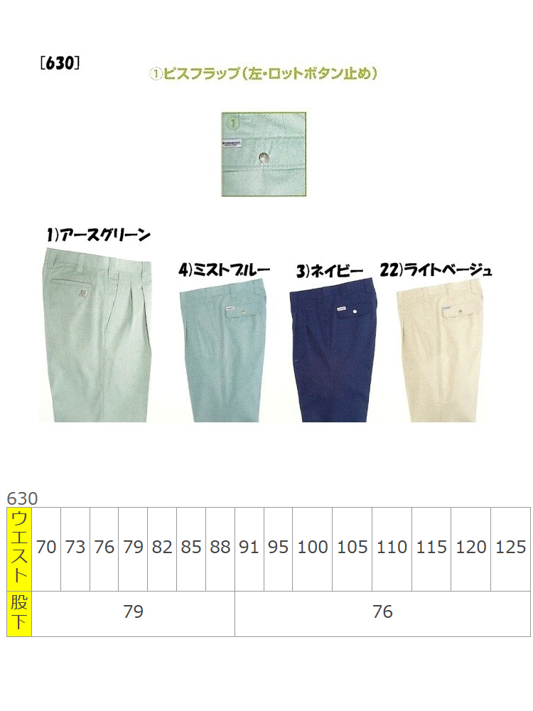 | 製品名: | 作業服 作業着 バートル[BURTLE] ツータックパンツ 630 春夏作業服 |