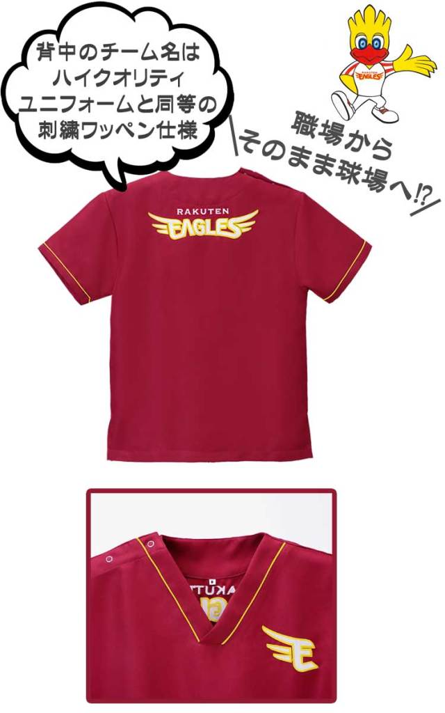 楽天イーグルスのスクラブの販売です。東北楽天ゴールデンイーグルスのスクラブです。応援ユニフォームとしてもお仕事着としても最適です。
