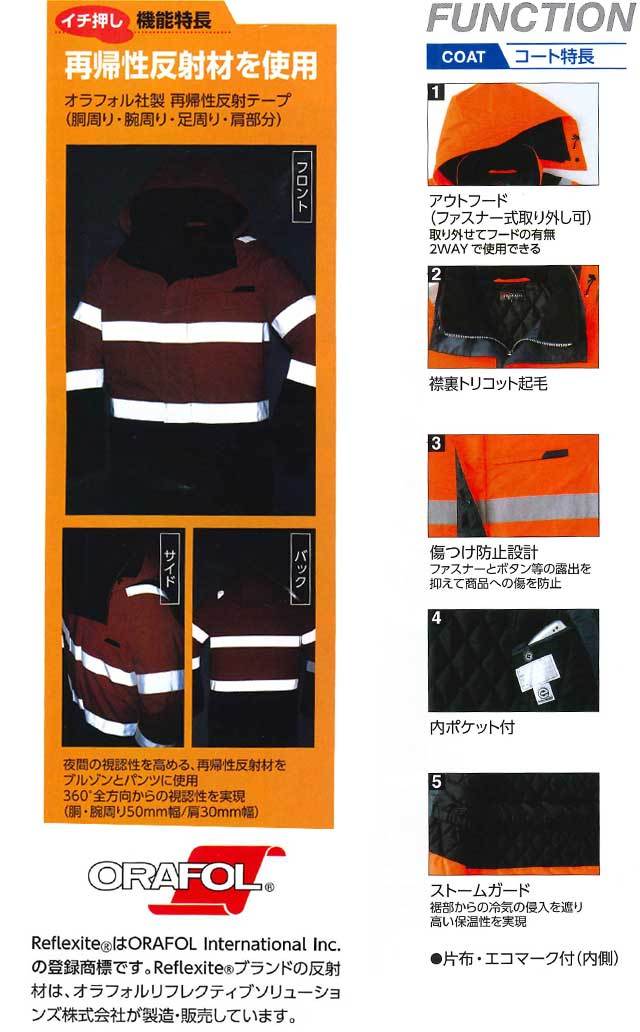| 製品名: | 高視認性防水防寒安全服 旭蝶繊維 高視認コート E78100 作業服 |