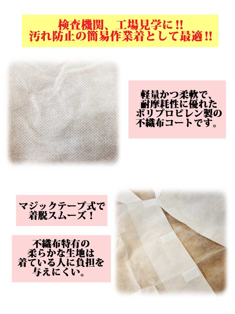 製品名: 簡易作業着 不織布 白衣 プロファイト ホワイトコート 10枚セット F-WC605 検査機関 工場見学
