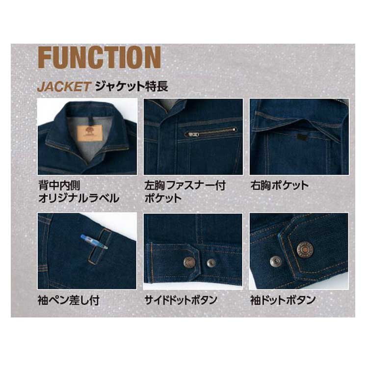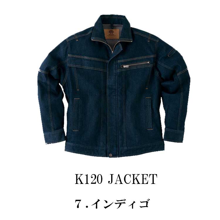 製品名: 作業服 旭蝶繊維 長袖ブルゾン K120 デニム 作業着
