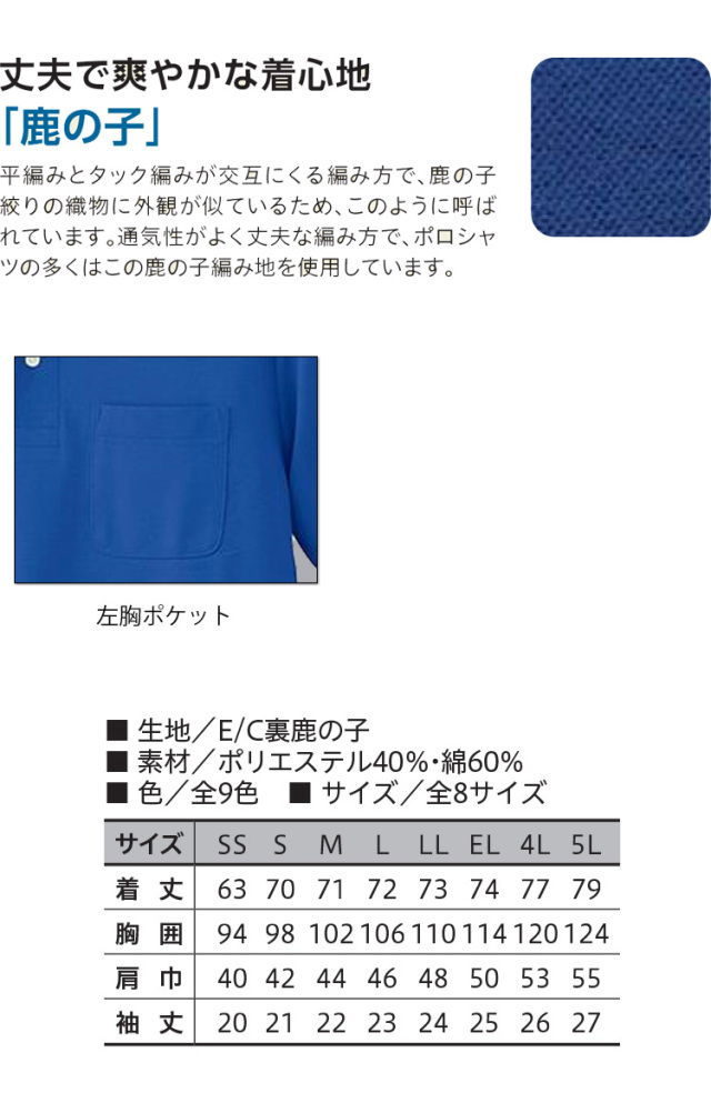 作業服 小倉屋 吸汗速乾 半袖ポロシャツ 6001