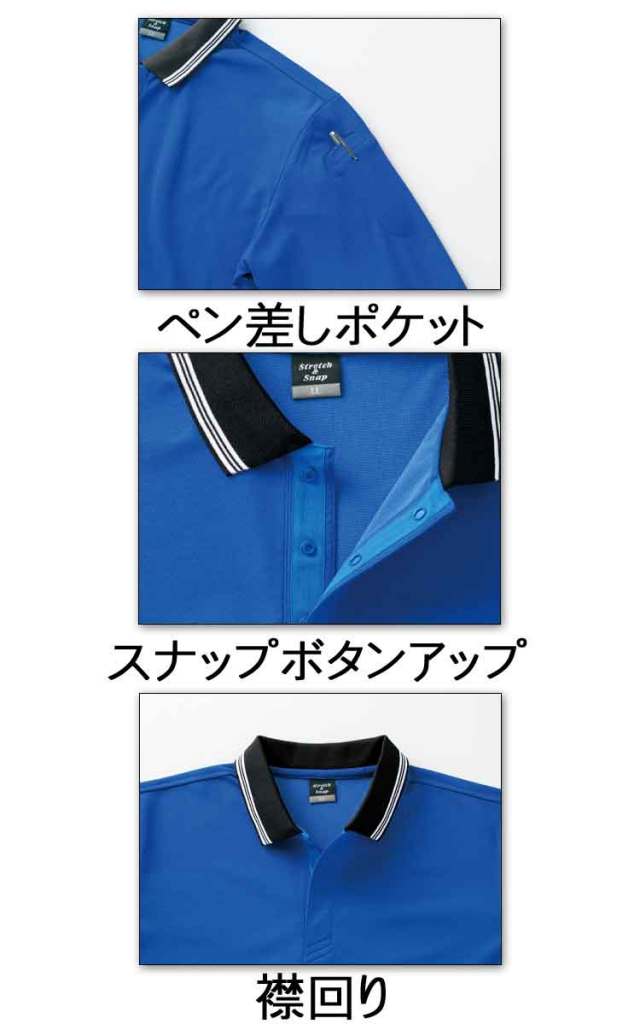 作業服 小倉屋 KOKURAYA スナップ釦ストレッチ半袖ポロシャツ 370
