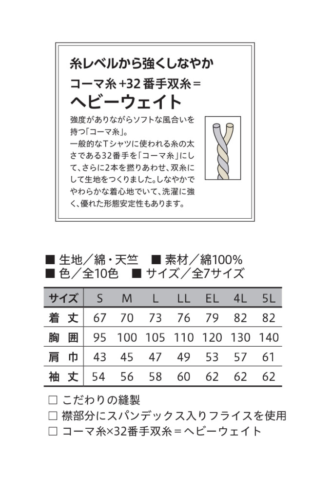 コットン100%のヘビーウエイト襟のヨレ対策にも安心。
