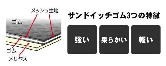 ・強い:メッシュ生地を良質のゴムでサンド。