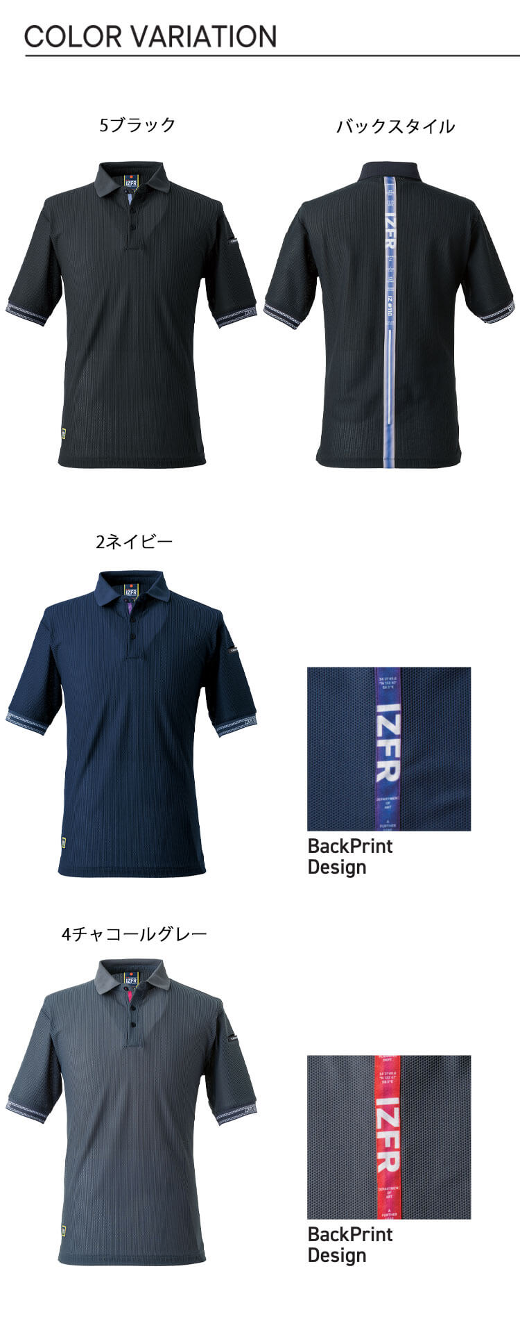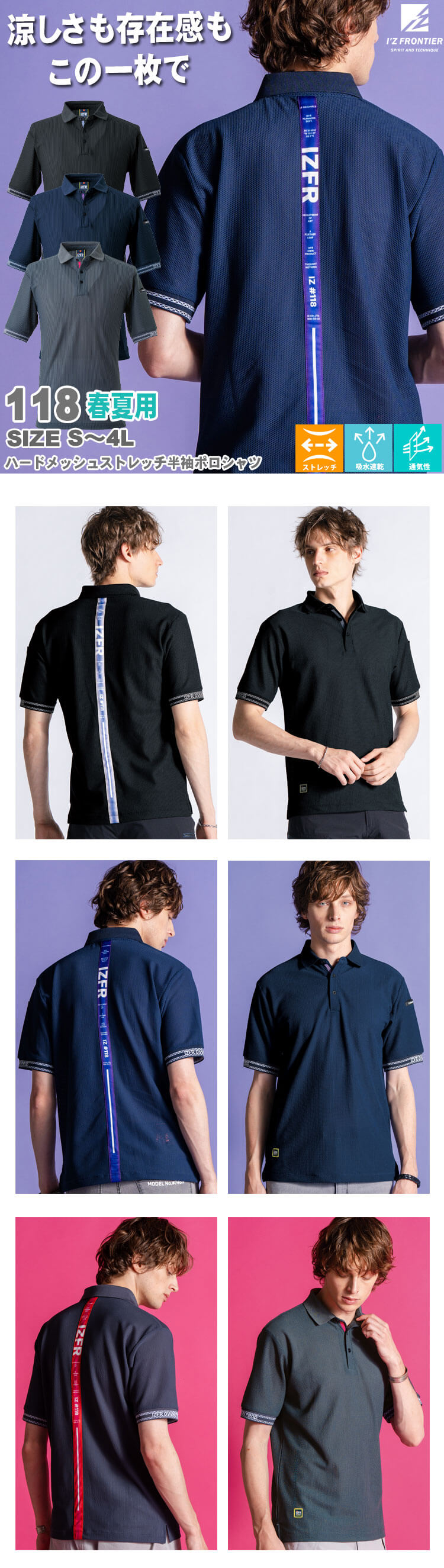 製品名: アイズフロンティア 春夏 ハードメッシュストレッチ半袖ポロシャツ 118