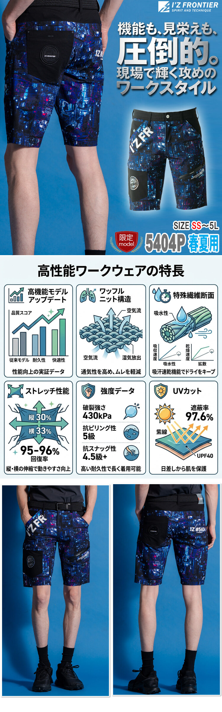 製品名: アイズフロンティア I'Z FRONTIER パウダーエアーストレッチハーフパンツ 5404 春夏 作業服