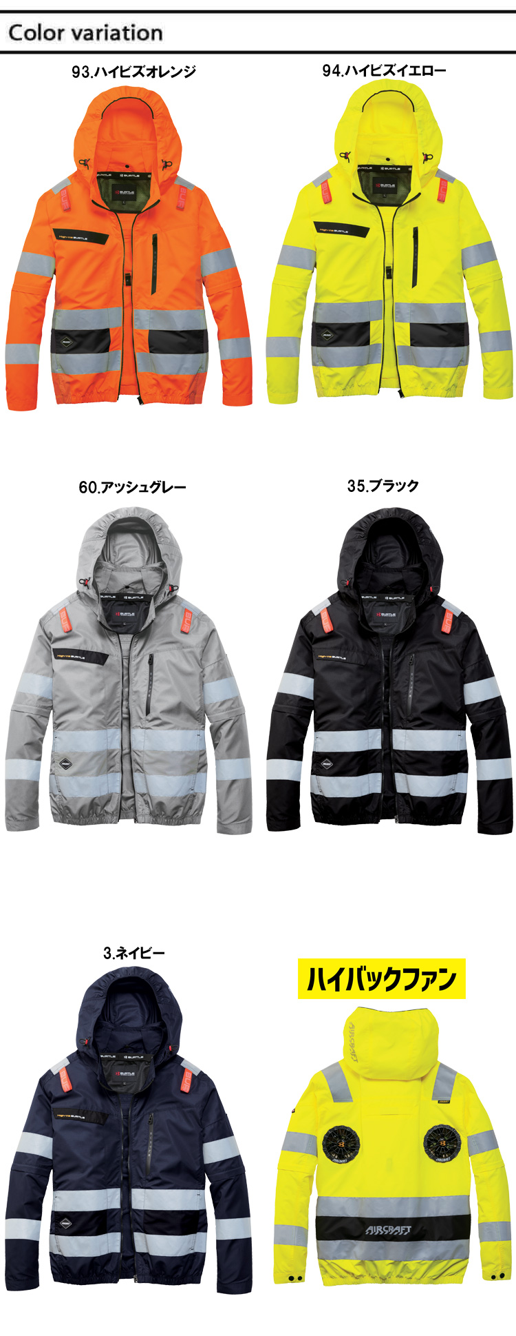 ・服のカラー :ネイビー、ブラック、アッシュグレー、ハイビズオレンジ、ハイビズイエロー