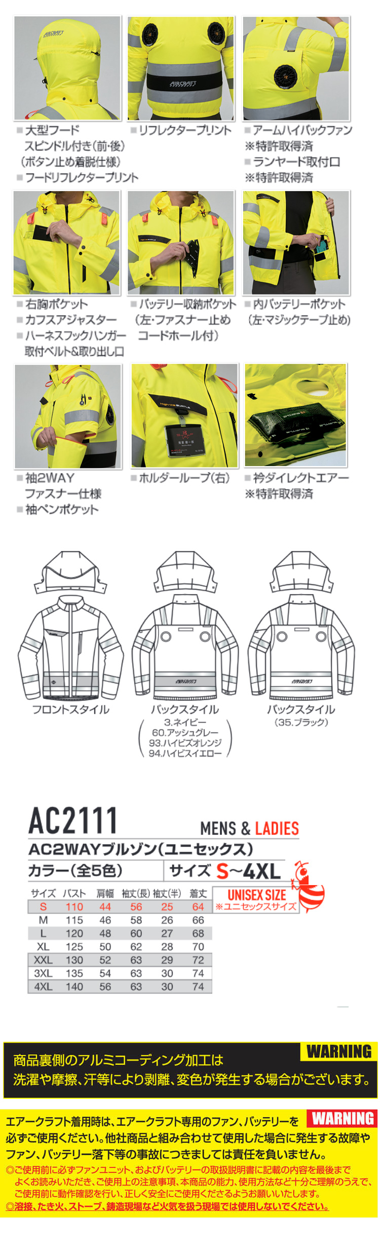AC2111 ポリエステル100%(植物由来合成繊維25%含)のエアークラフト2WAYブルゾンとファンとバッテリーをお届け!