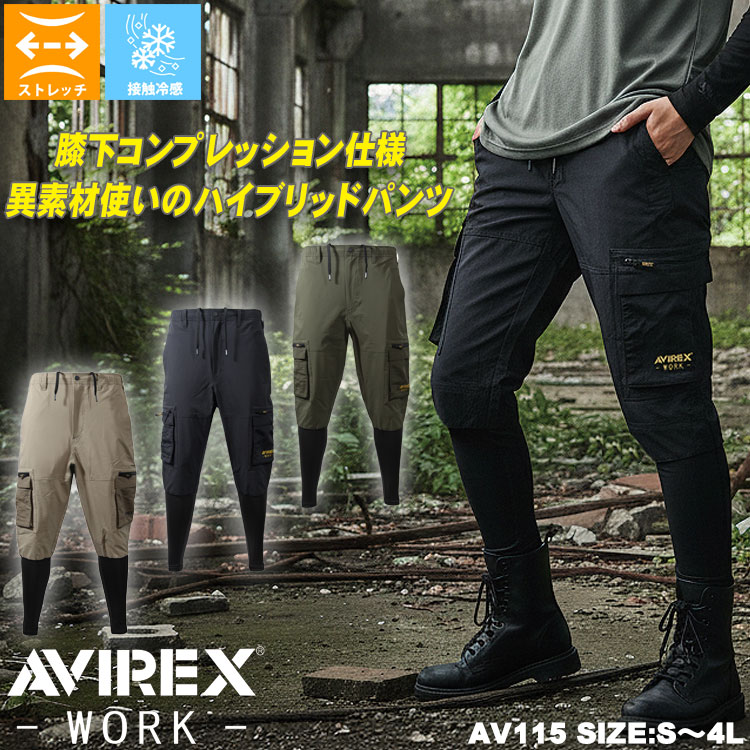 • [6月下旬入荷先行予約]AVIREX WORK アヴィレックスワーク ハイブリッドカーゴパンツ AV115 作業服 接触冷感 春夏 2026年春夏新作