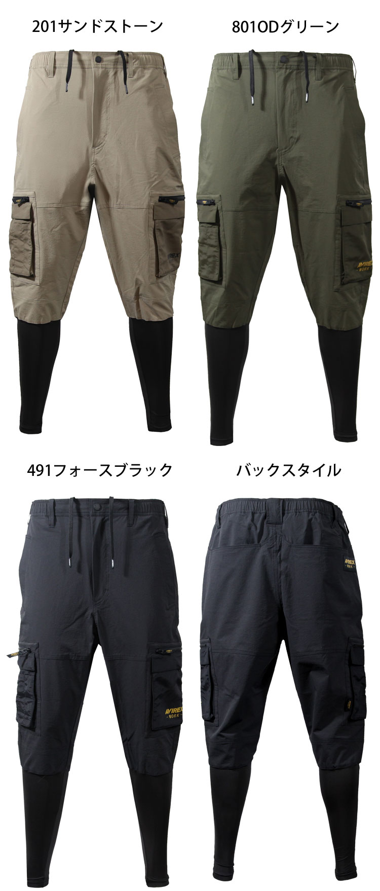 商品説明: アヴィレックスワークのボトムシリーズです。左右に異素材使いのカーゴポケットを配置したカーゴパンツです。膝下はコンプレッション素材を使用したハイブリッド仕様になっています。