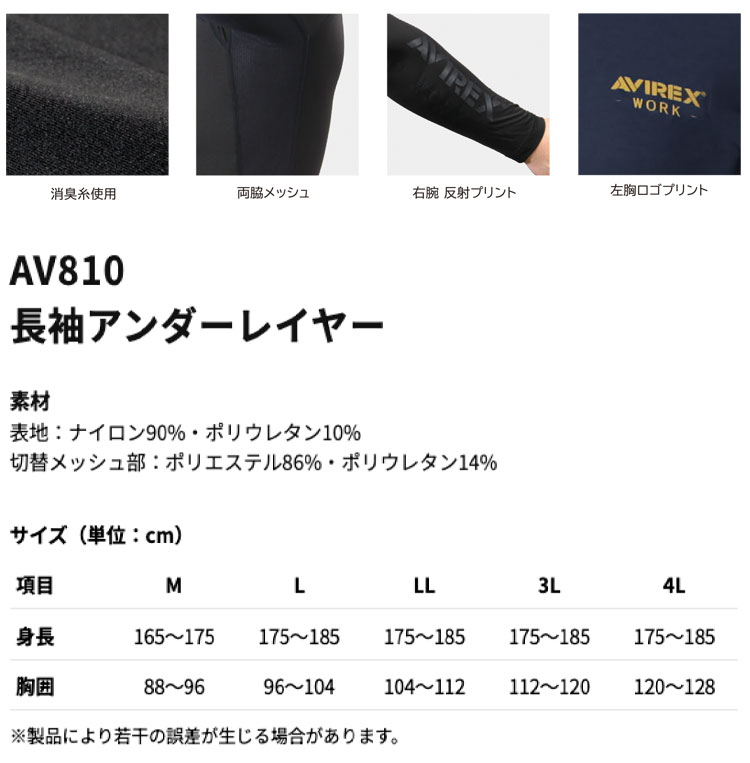 製品名: AVIREX アヴィレックスワーク 長袖アンダーレイヤー AV810 インナー コンプレッション