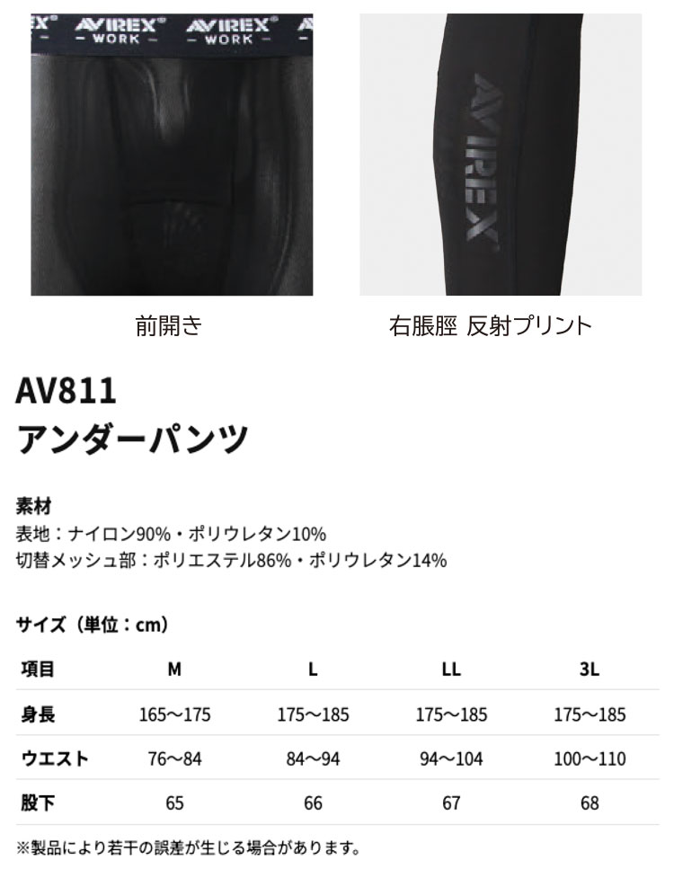 • [即日発送]AVIREX WORK アヴィレックスワーク アンダーパンツ AV811 インナー コンプレッション 春夏 2026年春夏新作