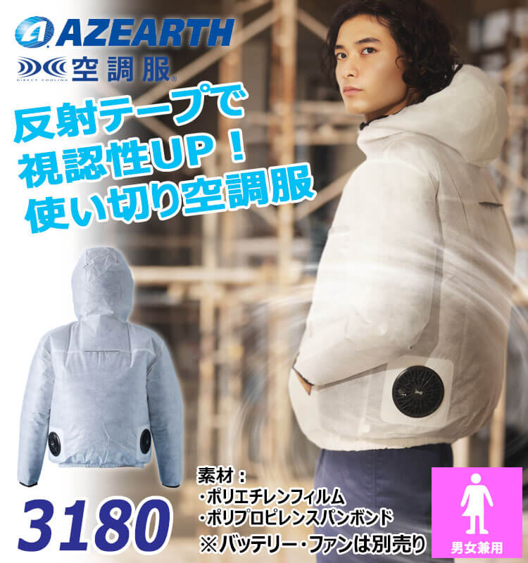製品名: 空調服 フード付ベスト(ファンなし) 3160 不織布 アゼアス 使い切り