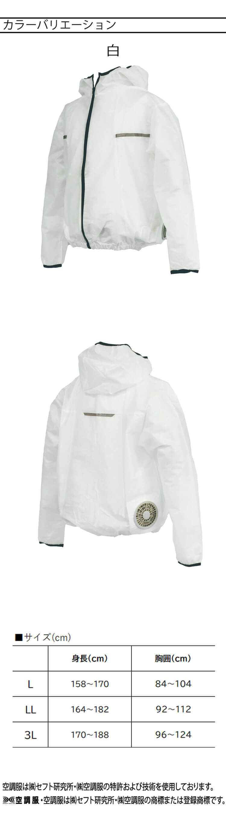 商品説明: 落ちない汚れもポイッとチェンジ!使い切り空調服です。油汚れ作業、塗装作業、清掃作業、機械メンテナンス、倉庫作業、建設現場など幅広い用途がございます。反射テープで視認性UPです。
