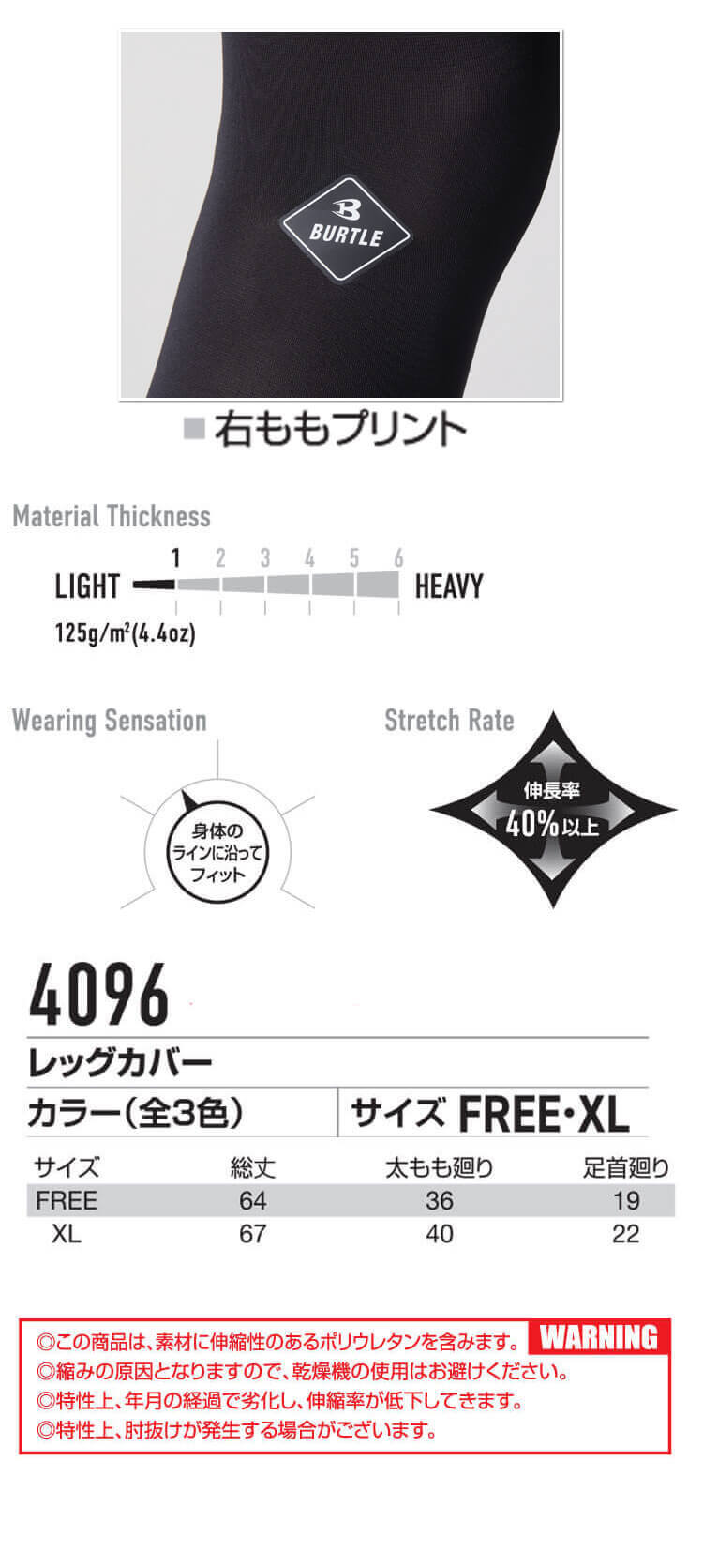 製品名: BURTLE バートル 春夏インナー レッグカバー 4096 コンプレッションインナー