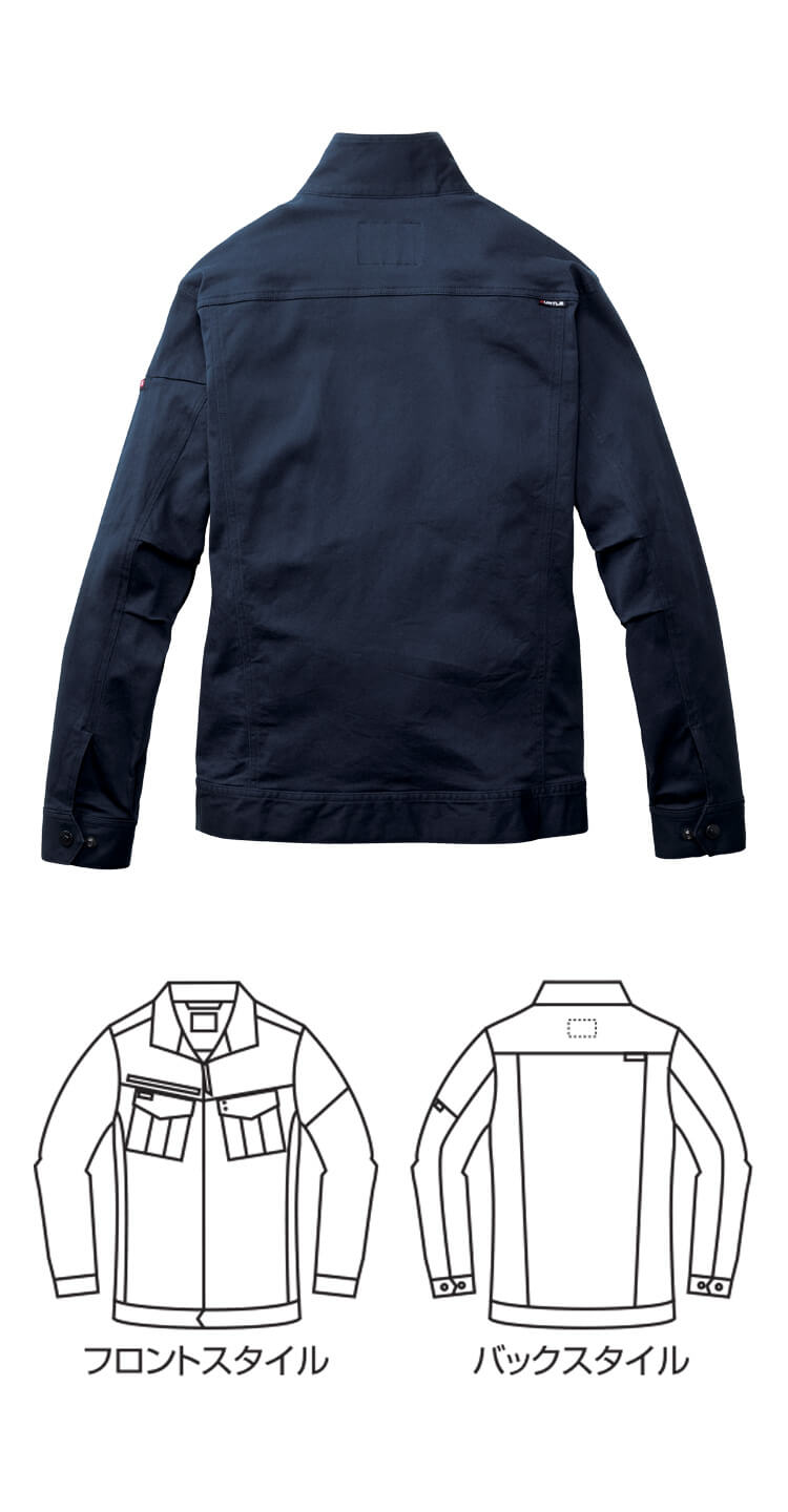 商品説明: 伸長率40%の驚異のストレッチ性が魅力の綿素材のシリーズです。ワークシーンで映える細身のすっきりしたシルエットです。