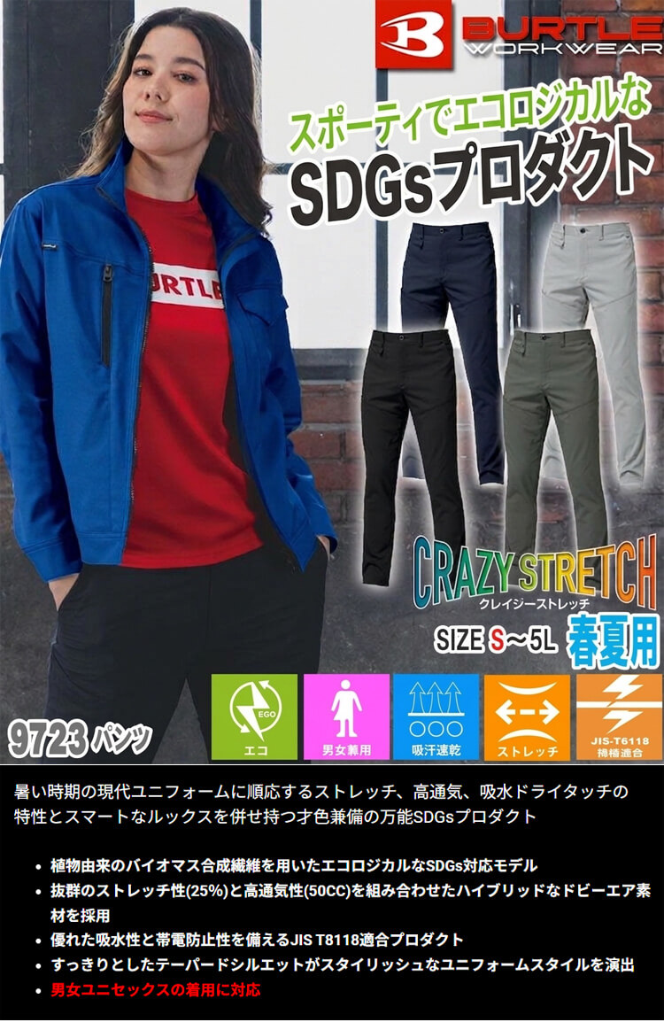 • [6月末入荷先行予約]BURTLE バートル エコ制電パンツ(ユニセックス) 9723 春夏 サイズS~3L 2026年春夏新作