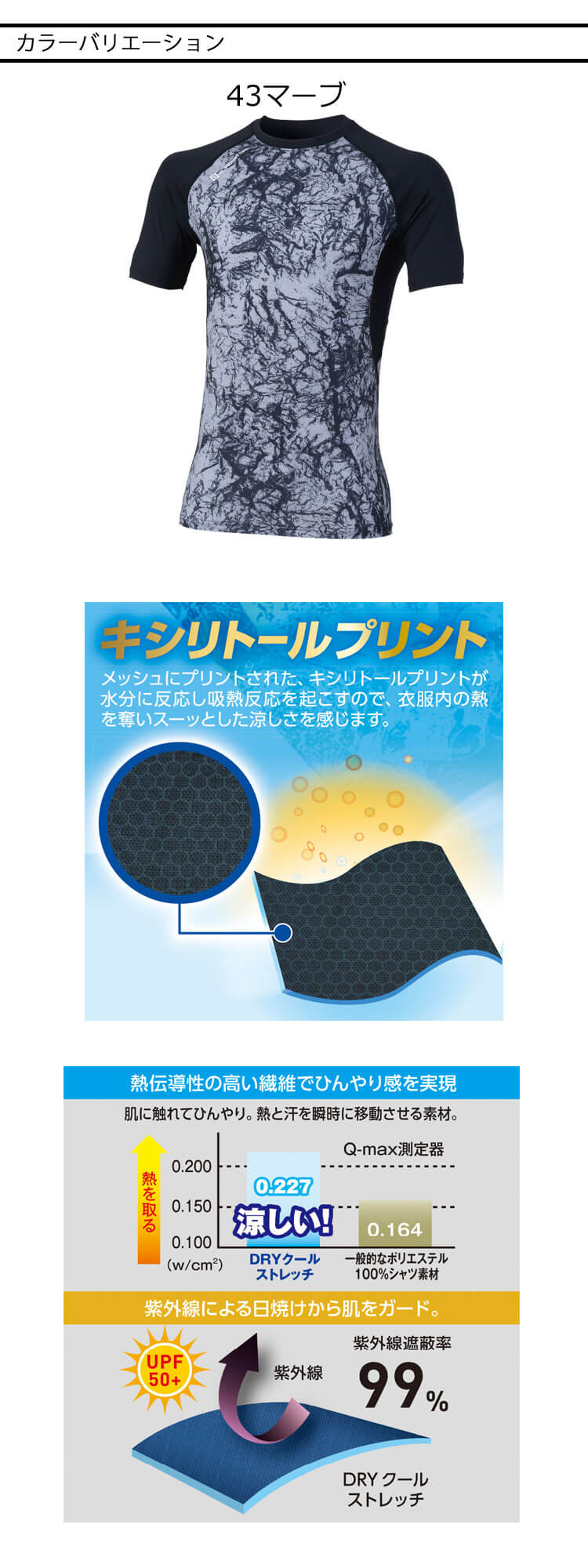 ■キシリトールメッシュ:首元・両脇メッシュ裏面のキシリトールプリントで-3℃の冷却効果