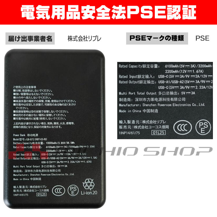 入力:USB Type-C×1(5V3A、9V2A、12V1.5A)
