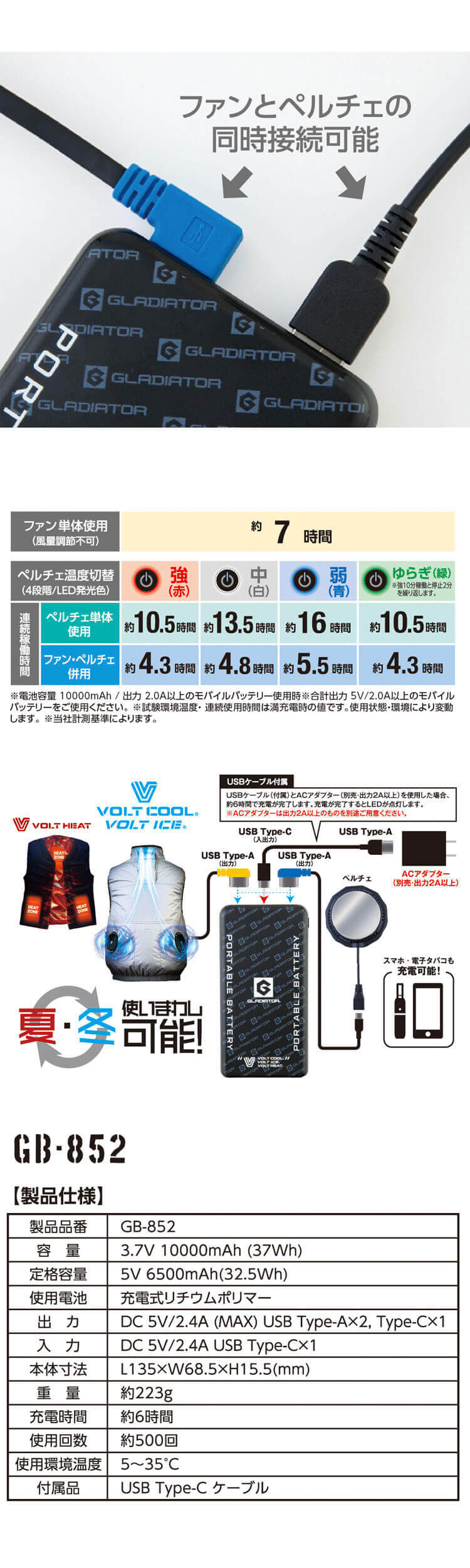 出力:DC 5V/2.4A(MAX) USB Type-A×2&Type-C×1