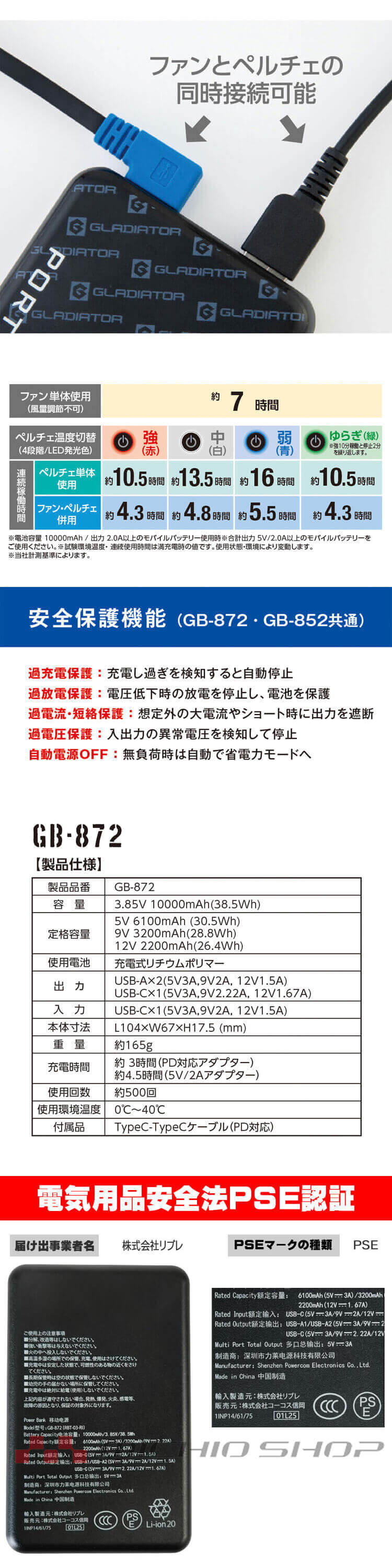 入力:USB Type-C×1(5V3A、9V2A、12V1.5A)