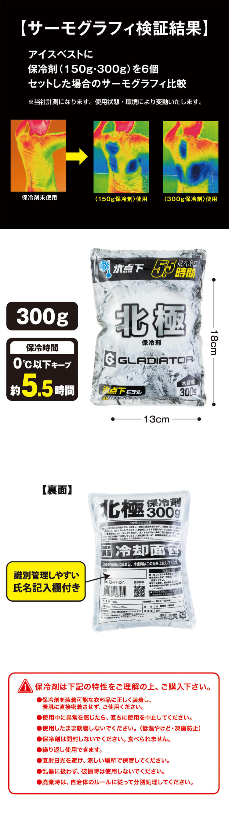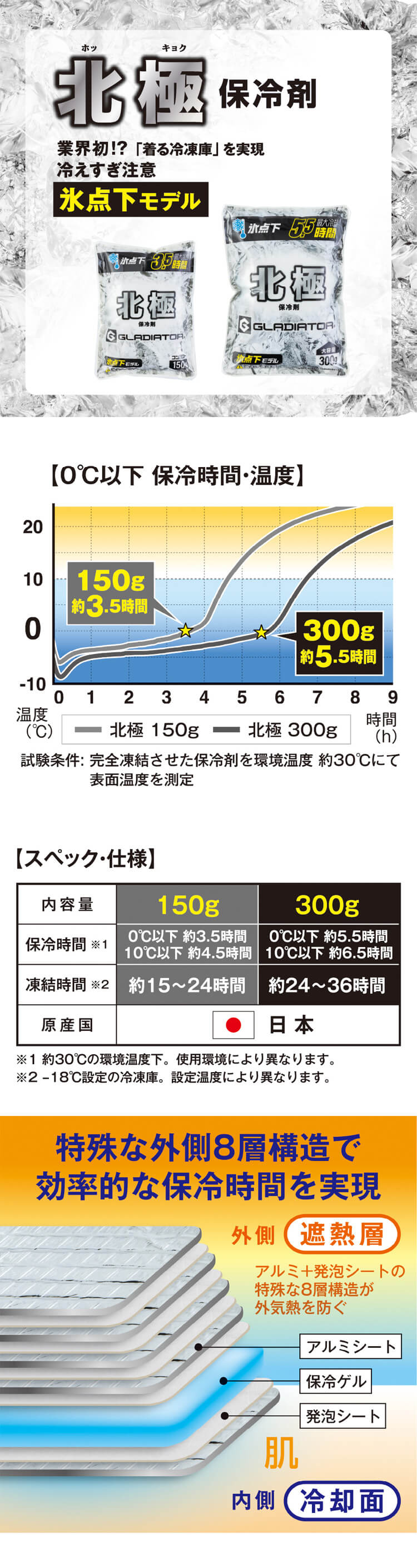 製品名: 北極 -10度 保冷剤 300g GI-47431 氷点下モデル ボルトアイス グラディエーター コーコス