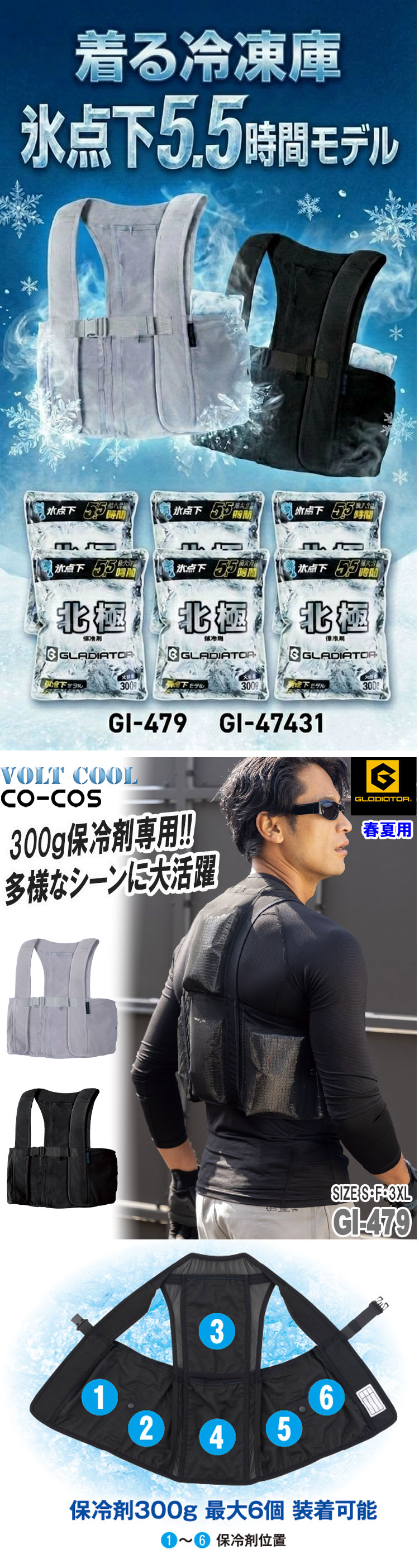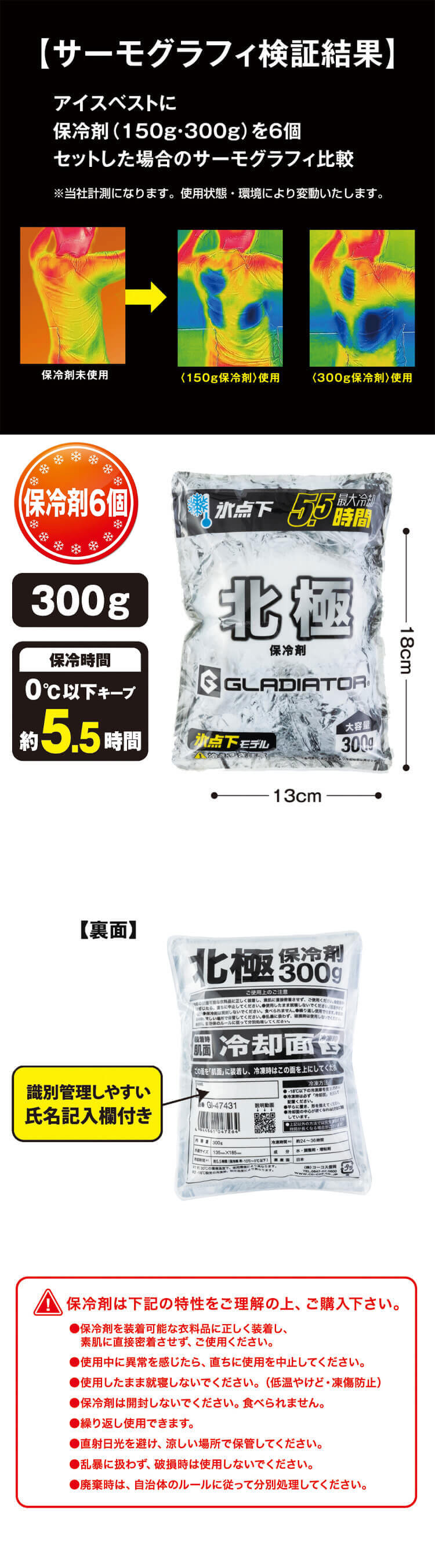 ・セット内容 : メッシュベスト×1、北極 -10度 保冷剤 300g×6