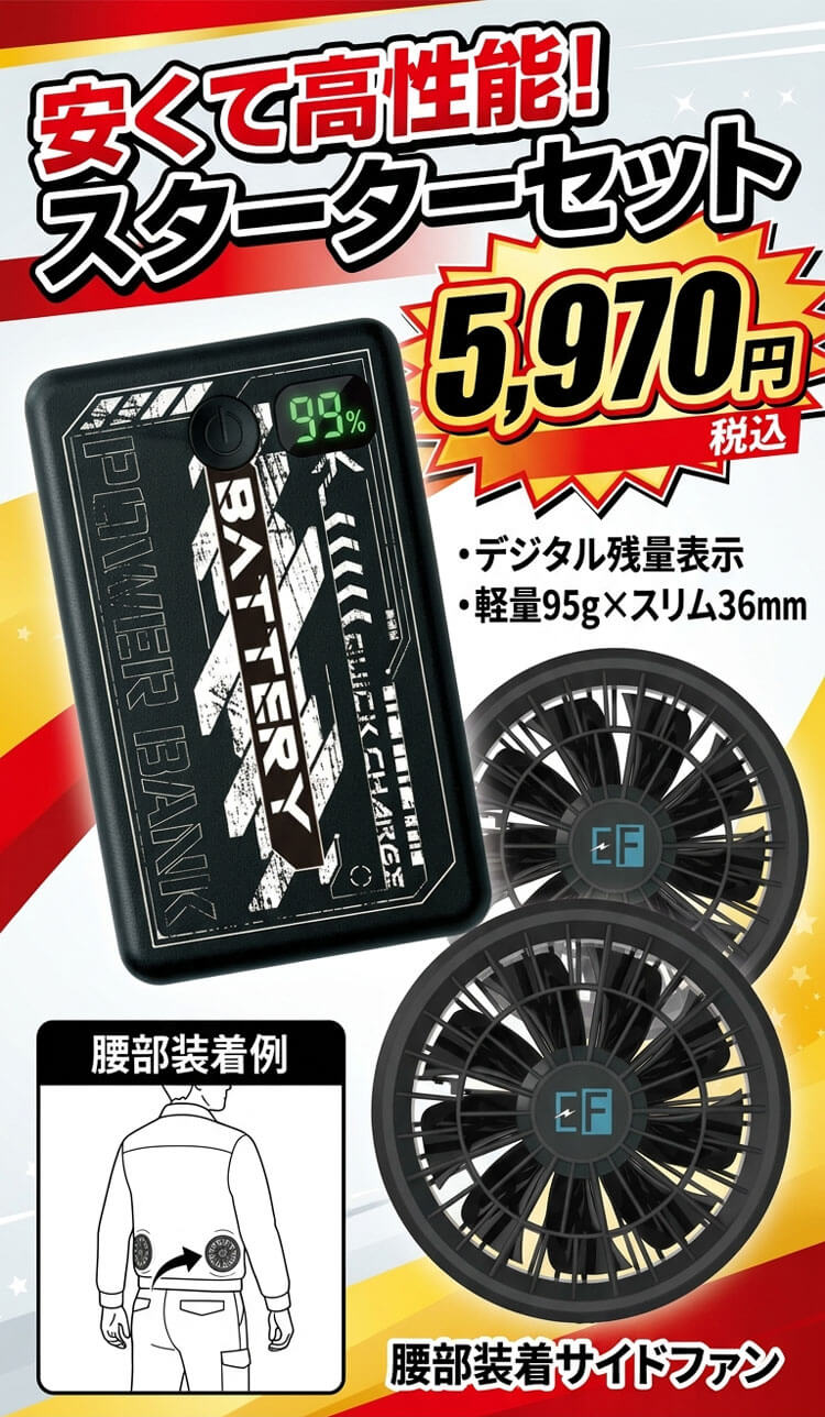 ファン2個・ファン用ケーブル1本・PD対応モバイルバッテリー個、・充電ケーブル1本