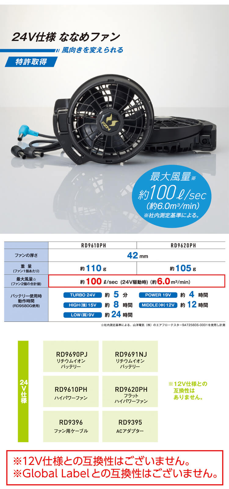 ※12V仕様との互換性はございません。