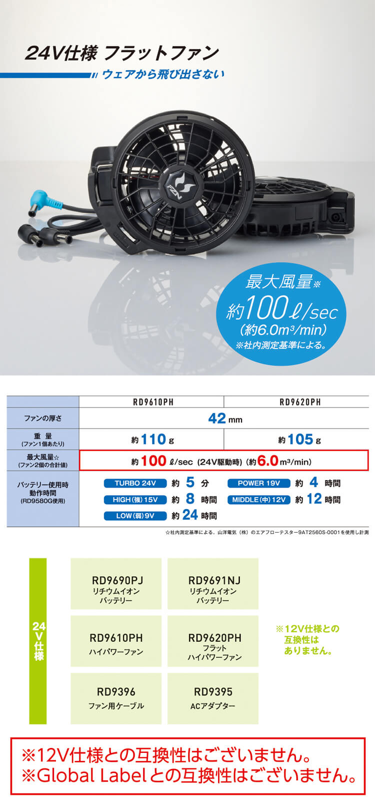 ★RD9620PH 24V仕様ファンセット(フラットタイプ)