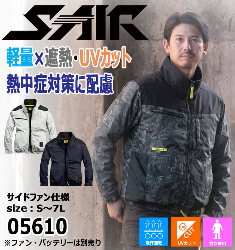 製品名: ファン付き作業着 シンメン エスエアー S-AIR 長袖ジャケット(ファンなし) サイドファン 05610