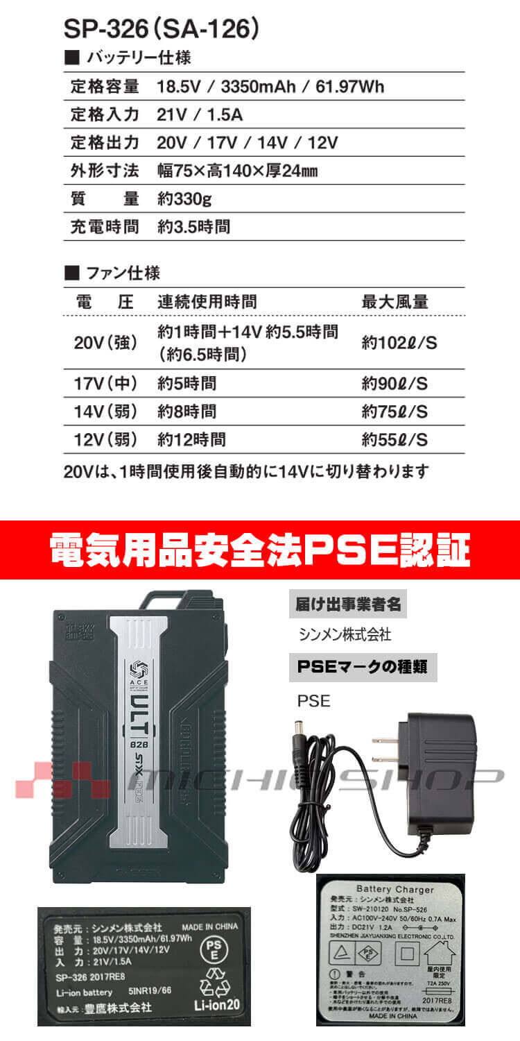 14V 約8時間/最大風量約75リットル/S