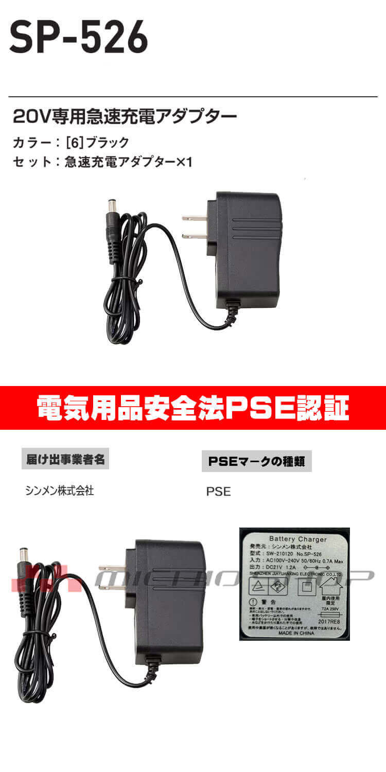製品名: シンメン S-AIR 20V専用急速充電アダプター SP-526 2026年モデル