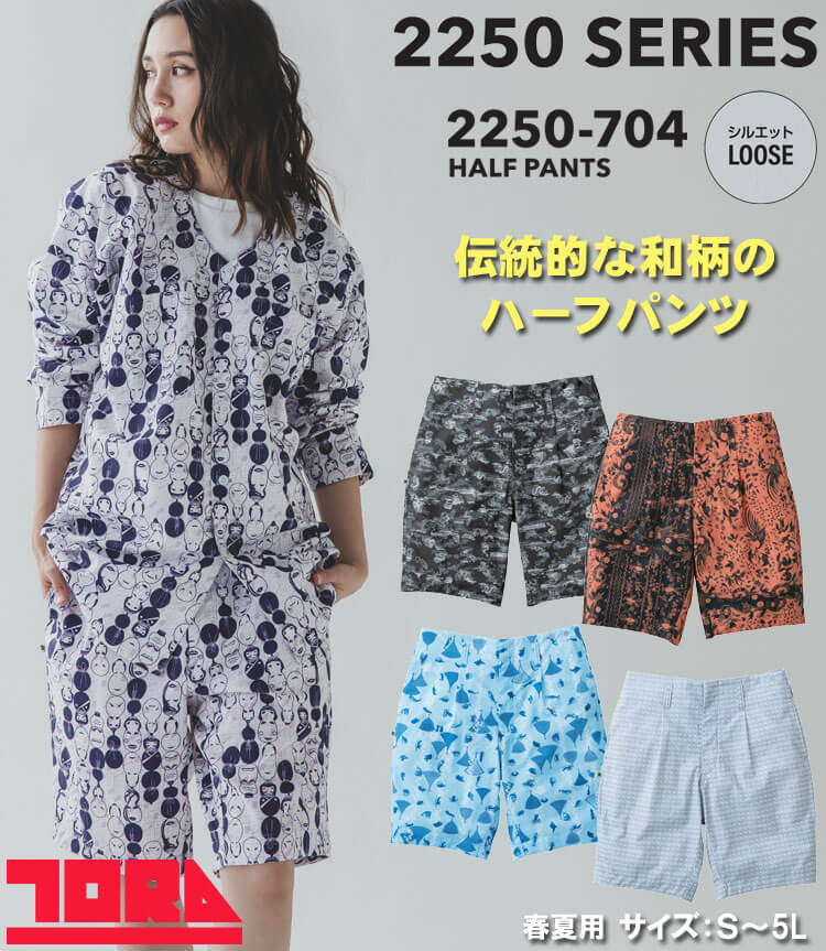 • [6月上旬入荷先行予約]作業服 祭事 祭り 飲食店 行事 春夏 TORAICHI 寅壱 トライチ 数量限定 和柄 ハーフパンツ(裏付) 2250-704 サイズS~3L 2026年春夏新作 2250シリーズ