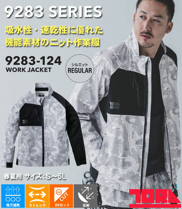 • 作業服 作業着 春夏 TORAICHI 寅壱 トライチ ワークジャケット 9283-124(限定色) 迷彩グレー ストレッチ サイズ4L・5L 2026年春夏新作