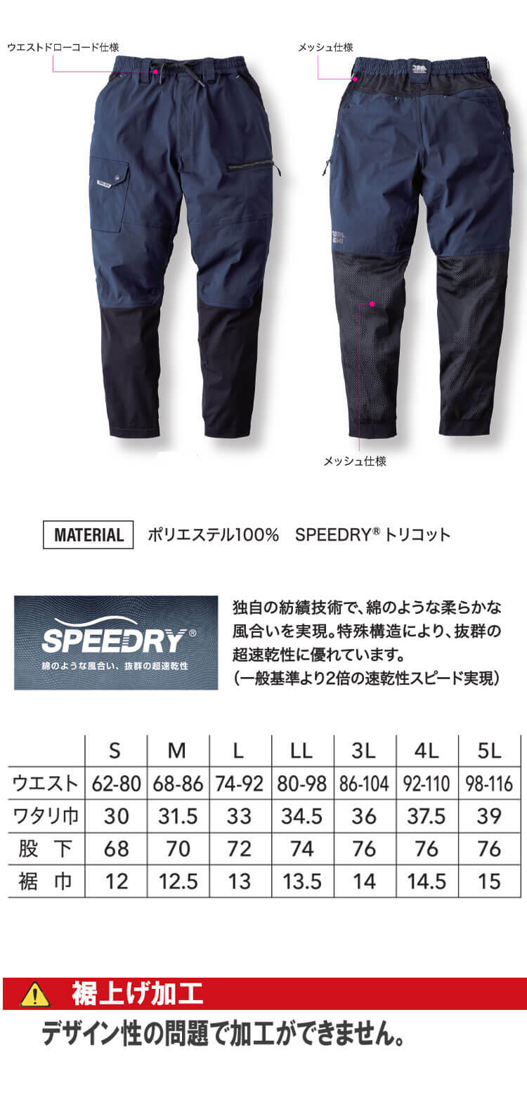 ・腰裏と太もも部分はメッシュ素材使用