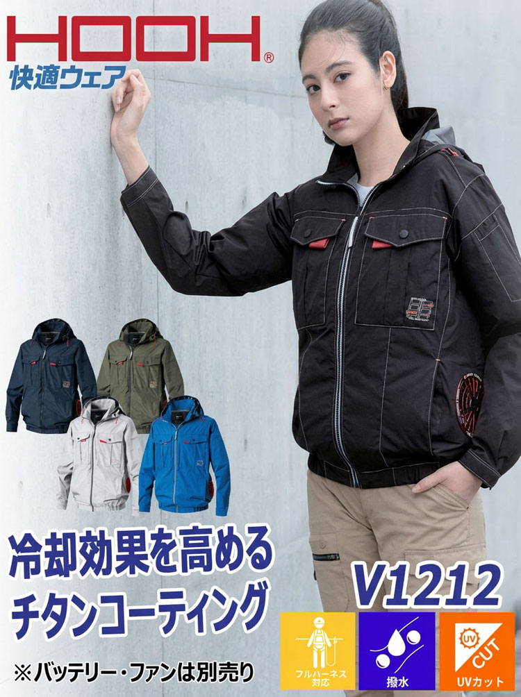 V1212 ポリエステル100%のサイドファン長袖フードジャケットをお届け!