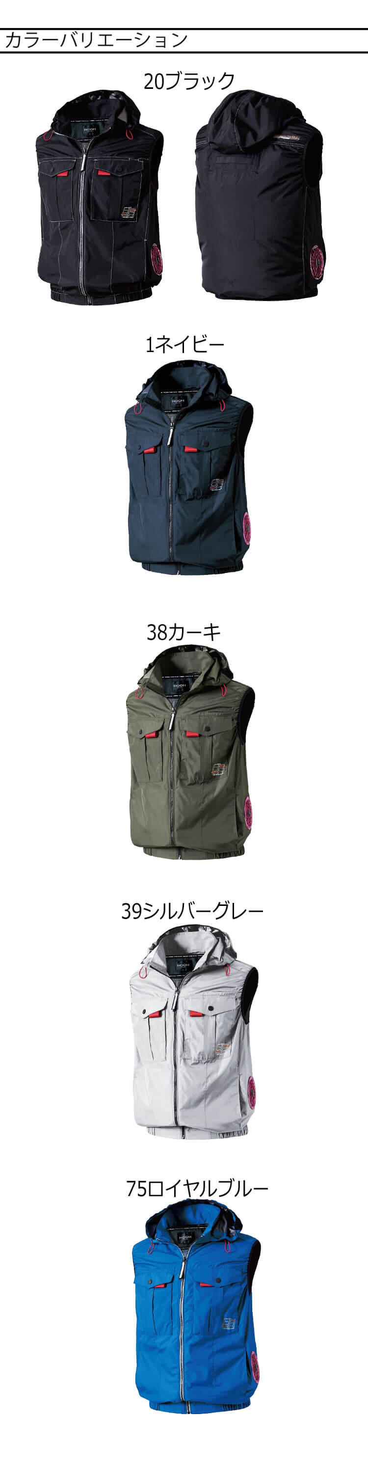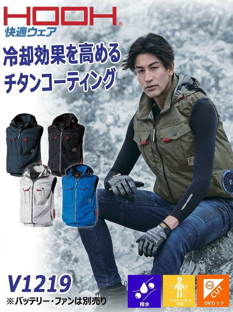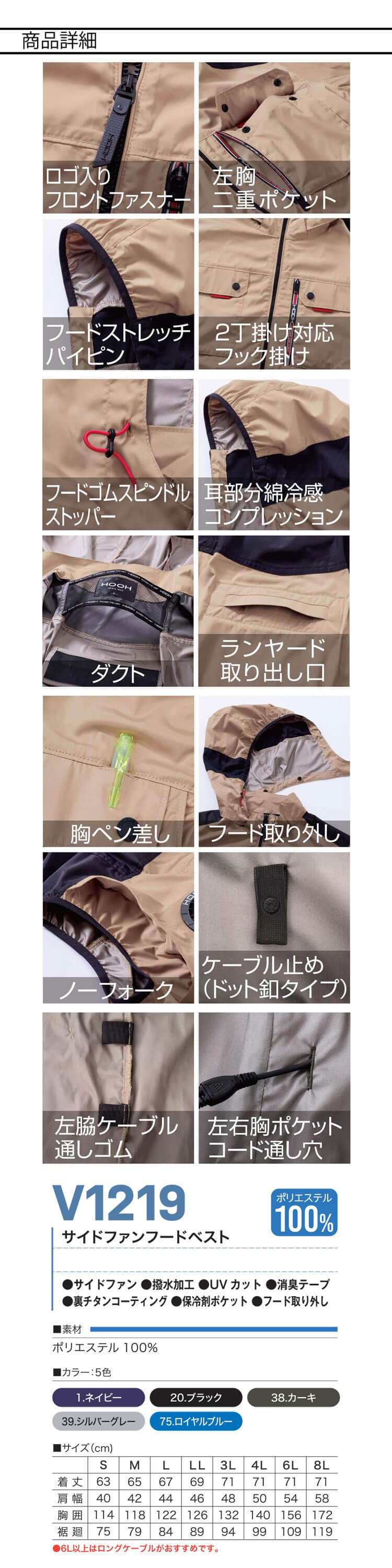 V1219 ポリエステル100%のサイドファンフードベストをお届け!