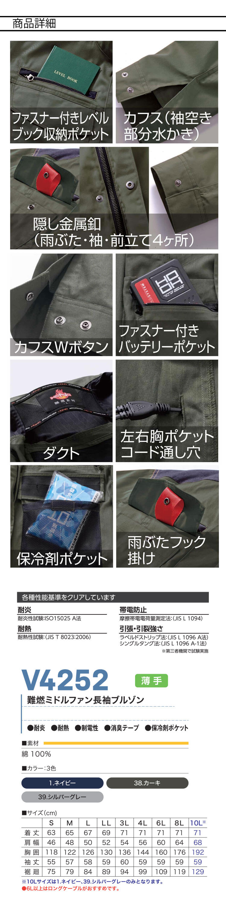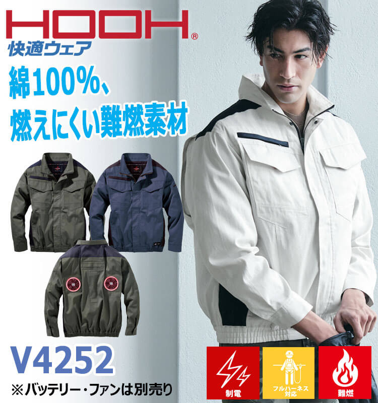 V4222 綿100%の難燃長袖ブルゾンをお届け!