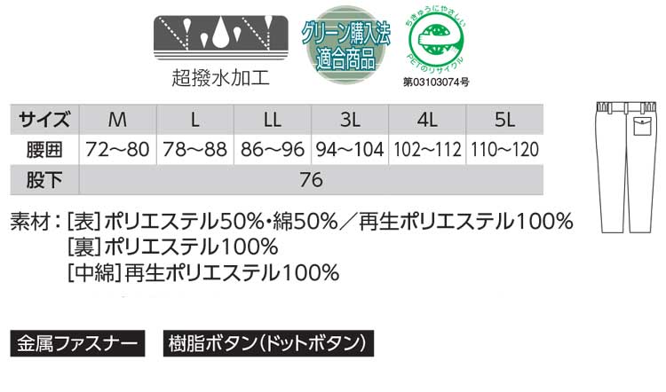 • 防寒着 XEBEC ジーベック 防寒パンツ 990 作業服