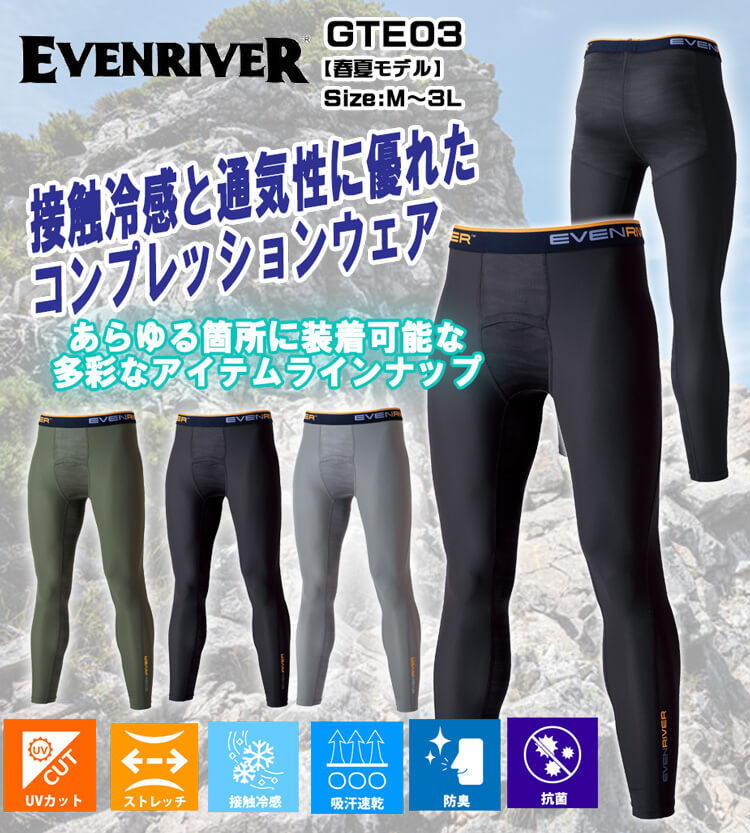 • 作業服 作業着 EVENRIVER イーブンリバー アイスコンプレッションレギンス GTE03 接触冷感 吸汗速乾 春夏