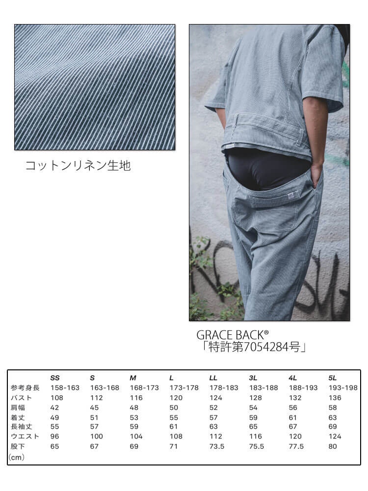 製品名: グレースエンジニアーズ GRACE ENGINEER'S コットンリネンツナギ GE-887 つなぎ 春夏 アウトドア 作業着 SKプロダクト 2026年春夏新作